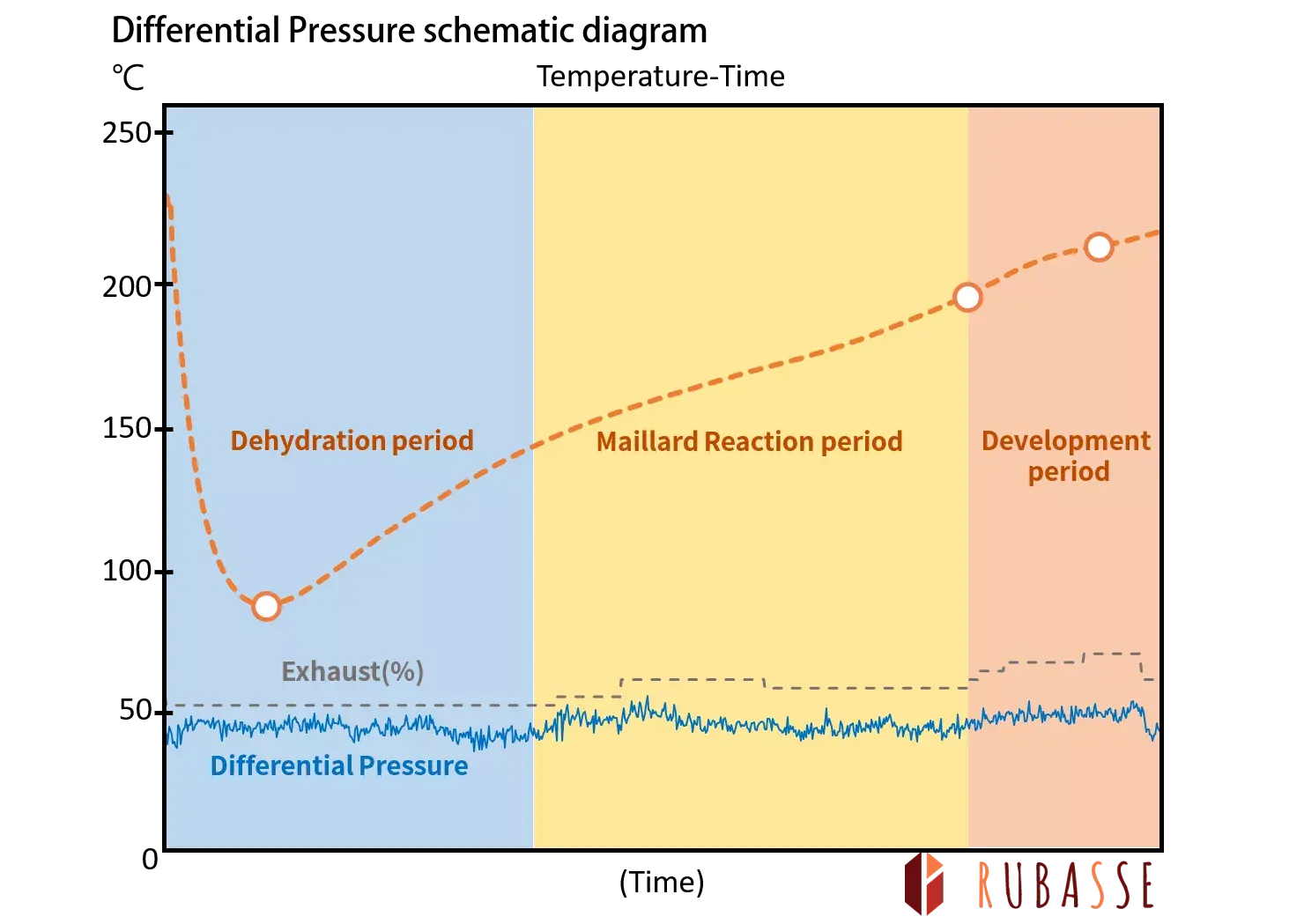 During the roasting process, the free water slowly evaporates and generates steam inside. Through Dehydration period, Maillard Reaction period and Development period, a variety of chemical reactions make the moisture and carbon dioxide in the cells discharged in a short time. As a result, the humidity, air pressure and the differential pressure between the interior and the exterior of the drum are increased.